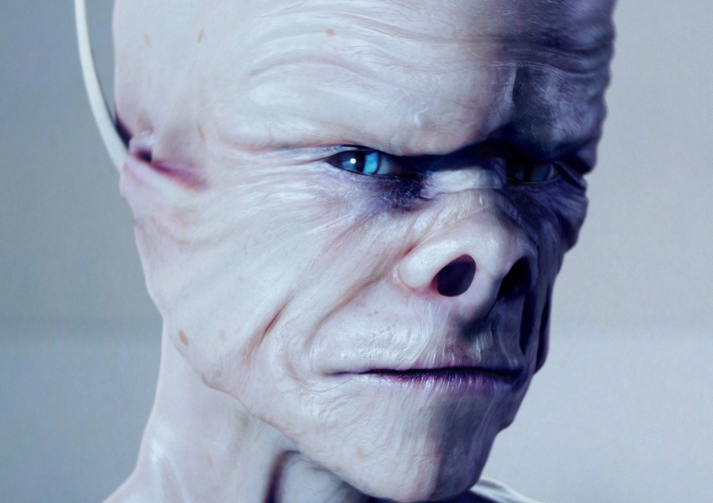 “It looked like a lab, with a blue color that reminded me of the movies or something. It was floating a little over the floor, he didn’t have feet that I could see. The hands were long, eight fingers on each hand. Very long fingers, but they looked like tools, also the same color as the head. The entire body was full of that shiny color.”
